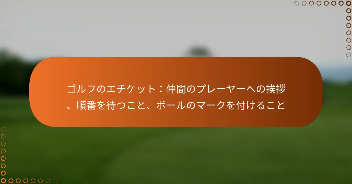ゴルフのエチケットは、コースの整備を維持し、すべてのプレーヤーが公正で快適なゲームを楽しめるようにする上で重要な役割を果たします。主な実践には、ディボットの修復、バンカーの整備、ボールマークの修正が含まれ、これらはすべてプレー面の全体的な状態に寄与します。これらの簡単なガイドラインに従うことで、ゴルファーはコースと仲間のプレーヤーへの敬意を示すことができます。